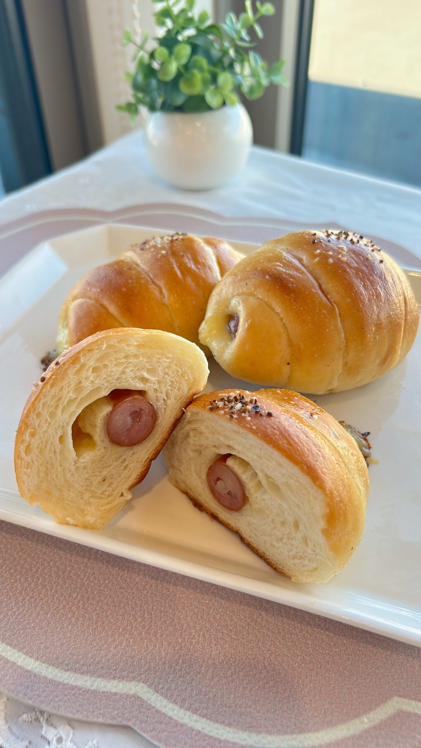 ウインナーとチーズを巻き込んだ、ブラックペッパー香る塩パン。