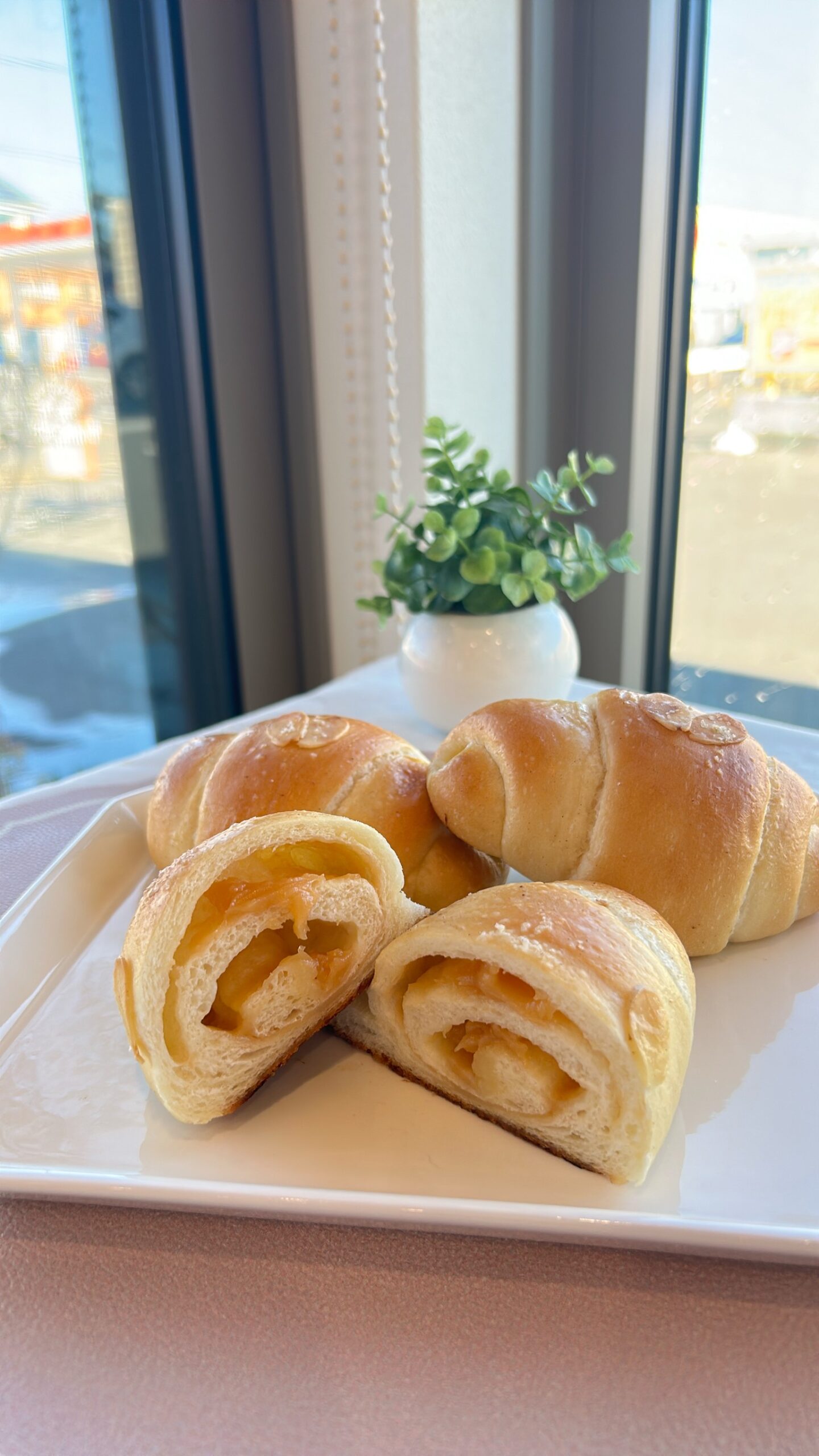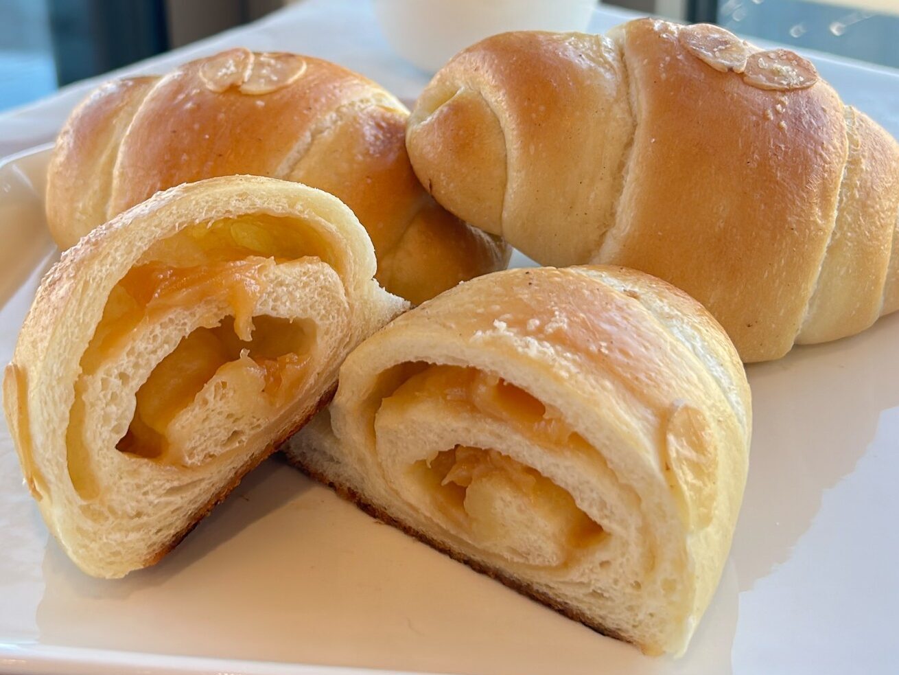 人気の塩パンに、とろりとしたキャラメルソースを入れて焼き上げました。キャラメルのほろ苦い甘みと、塩のしょっぱさが重なり、クセになる甘じょっぱさに。温めると香りが広がり、さらにリッチに楽しめます。