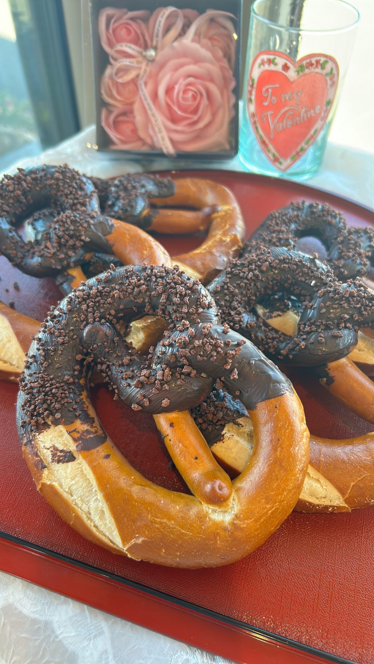 現在、「発酵バター入り プレッツェル チョコ」は2月平日(水曜日は除く)の限定のパンとなります。バレンタインの贈り物におすすめです。