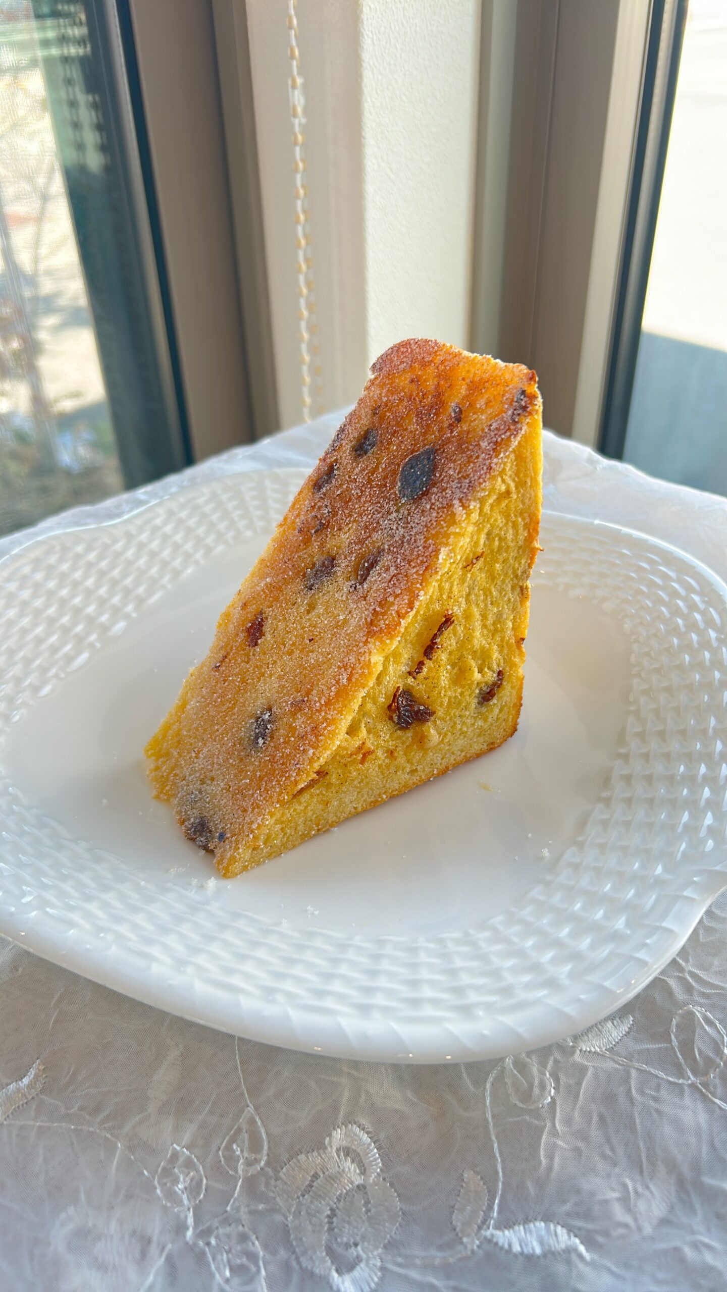 当店自慢の「フルール・オ・レザン」を厚切りにし、卵液をたっぷり染み込ませて三角のフレンチトーストに仕上げました。しっとりやわらかな食感の中に、レーズンの甘みと香りが広がります。パンの美味しさをダイレクトに味わえる一品です。